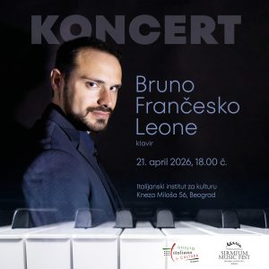 U utorak, 21. aprila u 18.00 časova u Italijanskom institutu za kulturu u Beogradu održaće se koncert italijanskog pijaniste Bruna Frančeska Leonea, koji se organizuje u saradnji sa takmičenjem „Sirmium Music Fest“ u Sremskoj Mitrovici čije deseto izdanje je na programu od 20. do 26. aprila 2026. Program koncerta obuhvata kompozicije Betovena, Rahmanjinova, Balakireva i […]