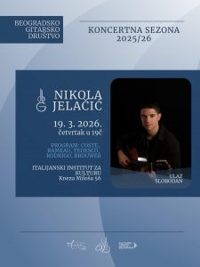 Koncerti iz ciklusa Koncerti u Galeriji, u organizaciji Kulturnog centra Beograda (KCB), značajne kulturne institucije prestonice, i ove godine gostuju u Italijanskom institutu za kulturu u Beogradu. Ovom saradnjom Institut se potvrđuje kao centar pokretanja inicijativa i aktivnosti kulturne saradnje, otvoren ka gradu i beogradskoj publici, i postaje scena za mlade darovite muzičare, dobitnike nagrada […]